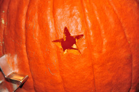 If you noticed our pumpkin in the pictures...we tried a new idea this year and we used cookie cutters to carve it and I have to say it was soooo much easier than the actual carving method.